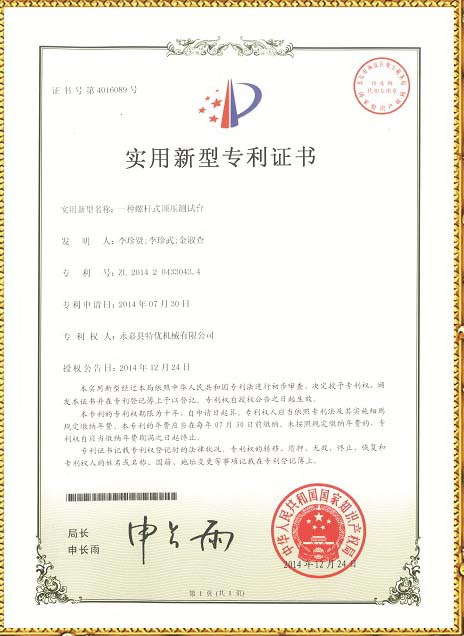 螺杆式测试台技术专利 | 顶压式试验台专利
