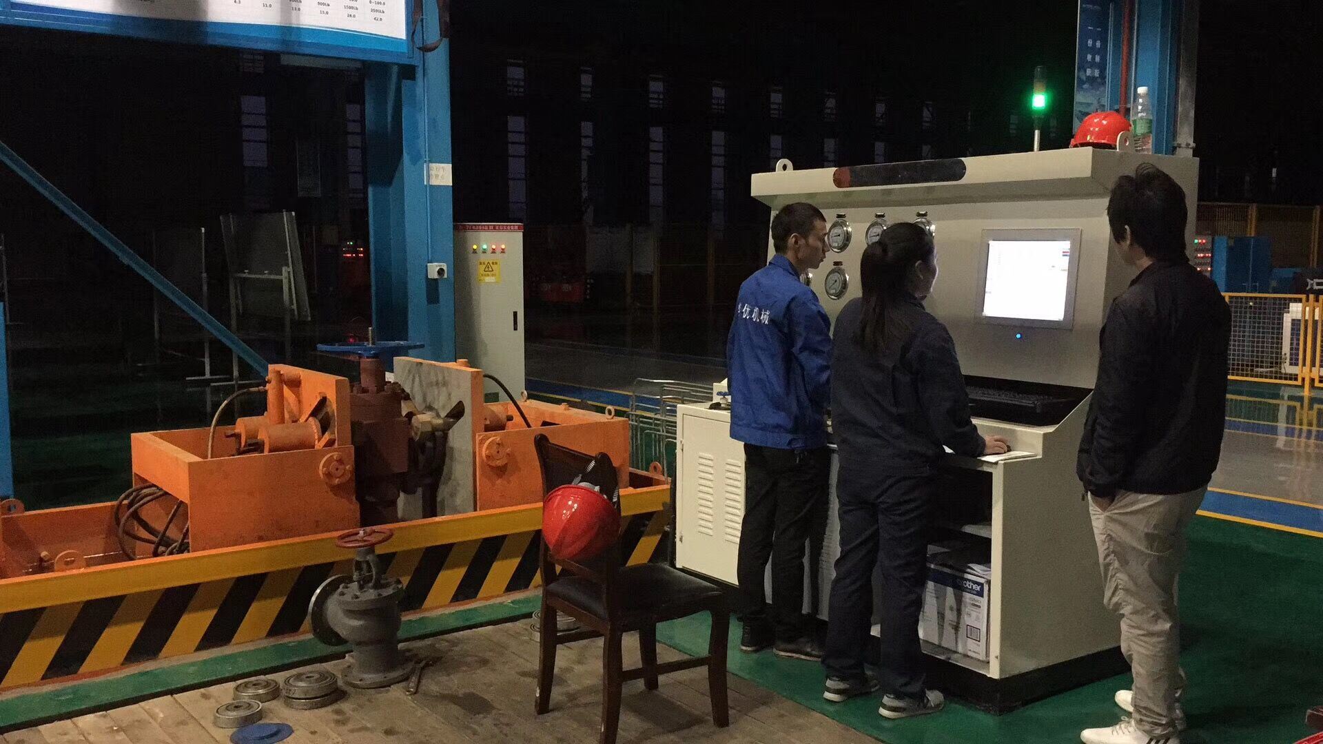 三、接通电源,按油泵启动按钮,检查电机转动方向,是否正确(顺时针方向)进行5—1 O分钟空载运转后,调节油泵压力在5 0MPa进行试机,各种动作,检查各管路有无泄漏,发现不良现象,应立即停机排除。