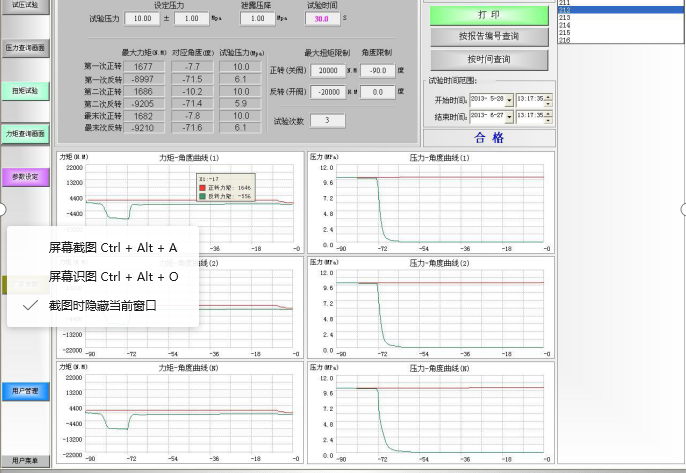 4. 该测试装置应能显控阀门扭矩测试过程中任一开度位置的扭矩值,打印表格上应有最大测试扭矩力,并能输出打印(阀门开度位置与扭矩值对应曲线图)。